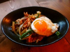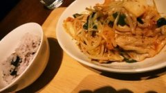 豚キムチに白ネギとモヤシ【カフェご飯】