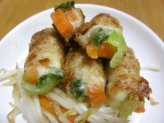 チーズの入ったカリッと豚巻き! 野菜、チーズ&豚肉で高タンパクで栄養もボリュームもバッチリ! 彩りキレイでお弁当にも! 鶏ガラでしっかり味の豚肉巻き! チーズの入ったカ...