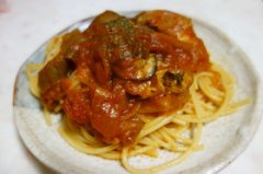 牡蠣とトマトとナスのラタトゥイユ風パスタ
