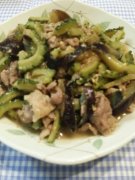 旨!豚小間・ゴーヤ・茄子の味噌炒め♪