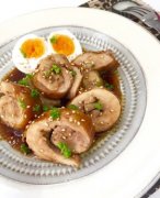 簡単鶏巻きチャーシュー風 簡単鶏巻きチャーシュー風(小石原焼 翁明窯元の器を使用) 簡単鶏巻きチャーシュー風 鶏もも肉 醤油、酒 みりん、お酢 砂糖 半熟卵 万能ねぎ、パセリ、...
