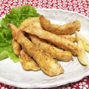 スティックカレーササミ あっさりしたささみをカレー味にしてスパイシーに揚げました。 スティックカレーササミ ささみ 塩、こしょう コンソメ顆粒 カレー粉 オリーブオイル 水...