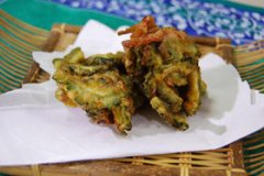 ゴーヤのハム揚げ ゴーヤとハムを合わせて揚げます 味は海苔の佃煮です揚げたてをどうぞ 料理研究家 行長万里 ゴーヤのハム揚げ ゴーヤ ロースハム 海苔の佃煮 卵 小麦粉 片栗粉...