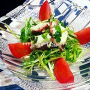 水菜とタコのサラダ~*カルパッチョ風* 茹でタコを相性抜群の自家製バジルソースで♪ 切って混ぜるだけの簡単サラダです☆ 水菜とタコのサラダ~*カルパッチョ風* 水菜 貝割れ大...