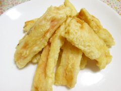 竹輪の磯辺揚げ 定番的ちくわの揚げ物。 材料 (3〜4人分) 焼き竹輪 2本 A薄力粉 60g A塩 ひとつまみ A青のり 2〜3g A水 70g 揚げ油 適量 1 竹輪は長さを2〜3等分に切る。縦半分に切り、...