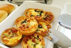 【業】黒胡椒チョップドハムのキッシュ 【業務用レシピ】 ビュッフェにぴったりなミニサイズのキッシュです カット野菜を使用すると混ぜて焼くだけで簡単に作れます 【業】黒胡...