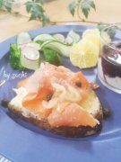 サーモンの塩レモンマリネオープントースト 朝食やパーティにも!さっぱりした塩レモンのマリネ液とハーブの効いた爽やかなクリームチーズのオープントーストです♡ 材料 スモ...