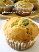ピスタチオマフィン ピスタチオのペーストと砕いたものと両方を混ぜ入れアーモンドミルクとココナッツオイルで仕上げナッツ風味満載のマフィンです♪ 材料 (マフィン型6個分)...