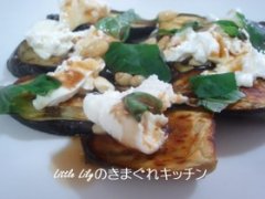 グリル茄子の温サラダ 茄子をグリルした温サラダですが、夏は冷やしてもおいしいです グリル茄子の温サラダ 茄子 モッツアレラチーズ 松の実 バジルの葉 バルサミコ酢 オリーブ...