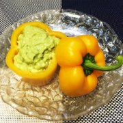 簡単サラダ アボガドインパプリカサラダ ハロウィンにぴったり、ランタンに見立てたサラダです。縦に切り分けて召し上がれ。生パプリカはジューシーで甘くて美味しい♪ 簡単サ...