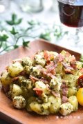 ジェノベーゼポテト♡ 電子レンジでお手軽に☆温かくても冷めても美味。新じゃがで作ると更に美味し~♪アルコールにもピッタリ♡ 材料 じゃがいも 2個(290g) ベーコン 2枚 クリ...