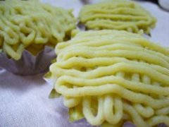 for KIDS☆さつまいもモンブラン☆ さつまいもでモンブラン♪1歳の息子もたまにはオヤツにケーキもいいよね♪ホットケーキミックスで簡単に作れます。卵も不使用です。離乳食後...
