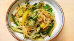 キュウリとオクラともやしで♪大葉の酢の物