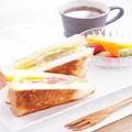 フライパンで☆BLTホットサンド Description フライパンでサクサク美味しいホットサンドが作れます♪ 卵とチーズもプラスしてボリュームup 材料 食パン(6枚切り) 1斤 ベーコン...