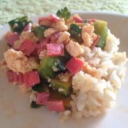 塩ゴーヤとモルタデッラの豆腐炒めゴハン
