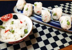 枝豆と塩トマトのおにぎり。混ぜご飯でも。