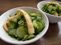 きゅうりオクラ油揚げの塩こんぶ酢の物