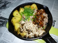 豚こまとブナシメジのアヒージョオイル炒め 今夜の温製タパスは、お肉の方で。豚こまにブナシメジと北あかりを合わせてみたよ。 材料 (1人分) 豚こま切れ肉 約280g 北あかり 中...