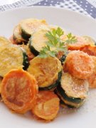 ズッキーニ&人参のチーズピカタ 朝食・お弁当・付け合せにも♪レンジを使い時短で調理とっても簡単です♪ズッキーニ食感が最高~♪更に人参の甘さが引き立つ一品 ズッキーニ...