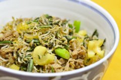 簡単◎春菊とセロリと豚肉とおじゃこの丼