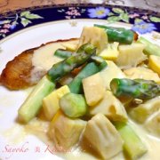 ポークソテー〜筍とアスパラの柚子クリーム