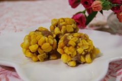 コーン団子 生のとうもろこしでも缶詰、冷凍でも作れます 色がきれいなのでお弁当にもぴったり子どもに大人気ですよ 料理研究家 行長万里 コーン団子 とうもろこし 片栗粉 合い...
