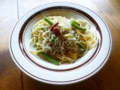 しらすとインゲンのペペロンチーノ♪ 旬のしらすとインゲンで(^^) あっさり美味しいオイルパスタはいかがですか♡ しらすとインゲンのペペロンチーノ♪ スパゲティー しらす イン...