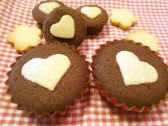 バレンタインに!♥模様のチョコマフィン マフィンとクッキーの組み合わせで簡単! 大量生産可能で友チョコにもオススメです♪ 材料 (Mサイズのマフィンカップ7~8個分) ■...