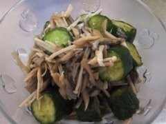 キュウリ×キノコ・焼き肉タレ和え