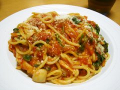 ブナピーとほうれん草のトマトソースパスタ