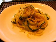 冷たいズッキーニとこぶ茶のパスタ