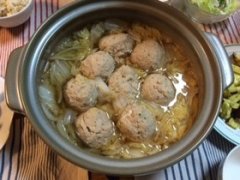 白菜と肉団子の温まる煮物♪ 毎年寒くなるとつくる肉団子の鍋物です 材料 (4人分) 豚ひき肉 300g A長ネギ 10cm位 Aじゃがいも 小1個 A塩、こしょう 少々 A生姜すりおろ...