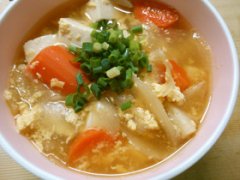簡単♪豆腐と玉ねぎと人参 卵の白だし煮!
