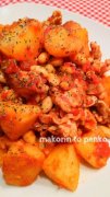 アラビアータ風*おかずポークビーンズ ピリ辛トマト味でほくほくじゃがいもと豚肉が美味しいボリューム満点のおかずポークビーンズです♪大豆が美味しく食べられますよ アラ...