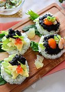 焼き海苔で作った佃煮のせ☆ライスカナッペ