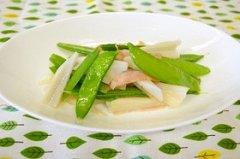 えんどうとレンコンの洋風きんぴら 旬の甘いえんどうとレンコンの食感が楽しいひと品です えんどうとレンコンの洋風きんぴら さやえんどう レンコン ベーコン 油 塩 こしょう 材...