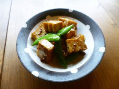 厚揚げとスナップエンドウのコク旨炒め♪