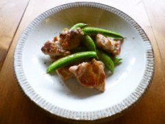 鶏とスナップエンドウのガーリック塩炒め♬