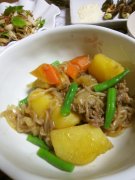 隠し味でコクUP☆我が家の無水肉じゃが 最後にちょっぴり調味料を加えるだけでコクが出るから不思議(^^)。素材の水分だけで煮込むと野菜が美味し~い♪油も未使用! 材料 (...
