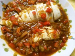 フライパンで 簡単 蒸し鶏の ピリ辛醤油