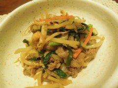 自家製焼肉のタレでプルコギ はちみつとりんご入りのタレがポイント☆漬けて焼くだけで簡単です。 材料 (4人分) 牛切落し肉 300~400g ニラ 一束 もやし 一袋 人参、玉...