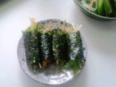 大根とチーズのピリ辛・韓国海苔巻き 大根のピリ辛がチーズと韓国海苔にとても合います。簡単おつまみです。 大根とチーズのピリ辛・韓国海苔巻き 大根 水菜 韓国海苔 スライス...