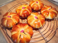桜あんぱん 春らしく桜餡と桜花を使ったパンを焼いてみました。 材料 (6個分) ○強力粉(キタノカオリ) 200g ○砂糖 15g ○塩 3g ○ドライイースト 3g ○バター(有塩) 20g ○黄卵 1(15g...