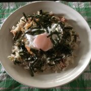 野沢菜・ベーコンチャーハン♫目玉焼きのせ ランチにチャーハン!野沢菜とベーコンの相性バッチリです♫目玉焼きをつぶしながら召し上がれ〜。 材料 (2人分) 野沢菜 80g ベーコ...