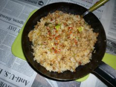 鉄パンでピリ辛そぼろ炒めの炒飯