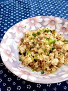 小松菜と魚肉ソーセージの五穀玄米炒飯