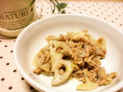 ぱぱっと!豚ひき肉とレンコンの炒め物