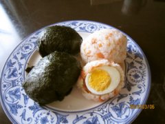 焼きサケごはんとゆで卵の爆弾おにぎり