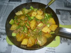 鉄パンで北あかりのピリ辛そぼろ炒め