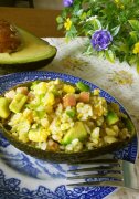 アボカド炒飯 アボカドの皮をココット皿として使って、おしゃれなランチに!♪ アボカド炒飯 アボカド 卵 ベーコン 細ネギ ご飯 塩コショウ サラダ油 材料 (2人分) アボカド 半分...